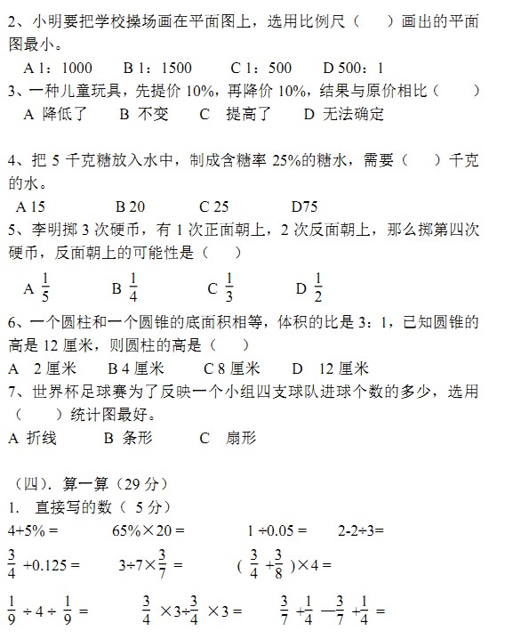 青岛市德县路小学数学毕业复习九(2)