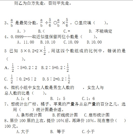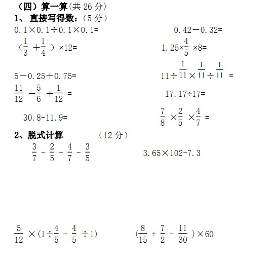 2010-2011青岛德县路小学六年级数学总复习题(2)
