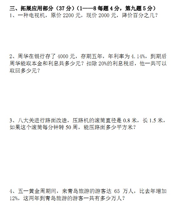 2010-2011青岛德县路小学六年级数学总复习题(4)