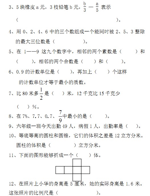 青岛德县路小学2009-2010学年度第二学期六年级数学总复习九 5.27