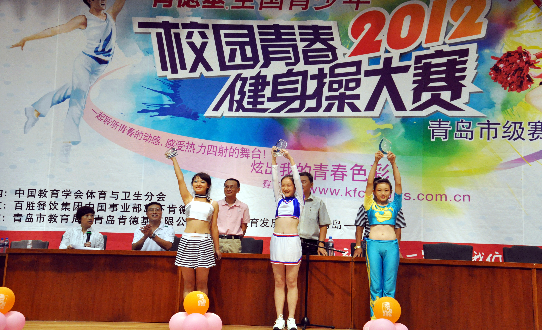 经过了2个星期的努力与拼搏,青岛26中在“2012肯德基全国青少年校园青春健身操大赛青岛市级赛”中获得啦啦操基础套路(初中组)一等奖的好成绩。两个星期以来,队员们每天都利用课间操与放学后的时间进行练习,回家写完作业后,还要再复习当天学过的动作。在付出汗水与心血的同时,锻炼了同学们的意志力,增强了团队意识,心中铭记着:一切以集体利益为主。当然,我们的付出也得到了回报。自信的笑容,优美的舞姿与整齐的队形征服了评委,获得了初中组的一等奖。