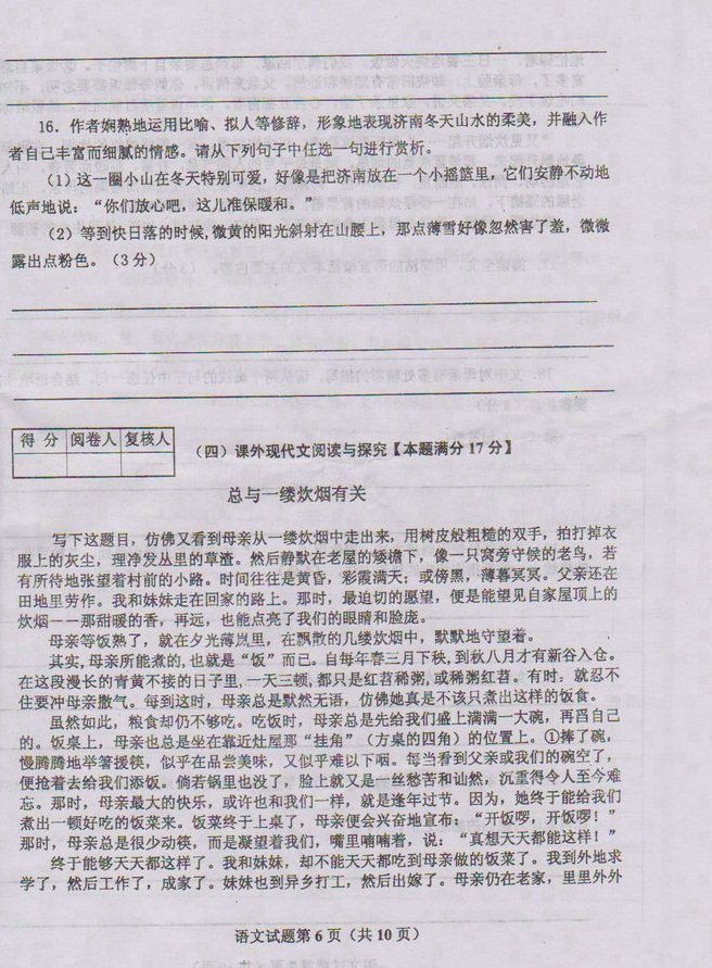 青岛59中2011-2012学年度七年级第一学期语文期中试题(6)