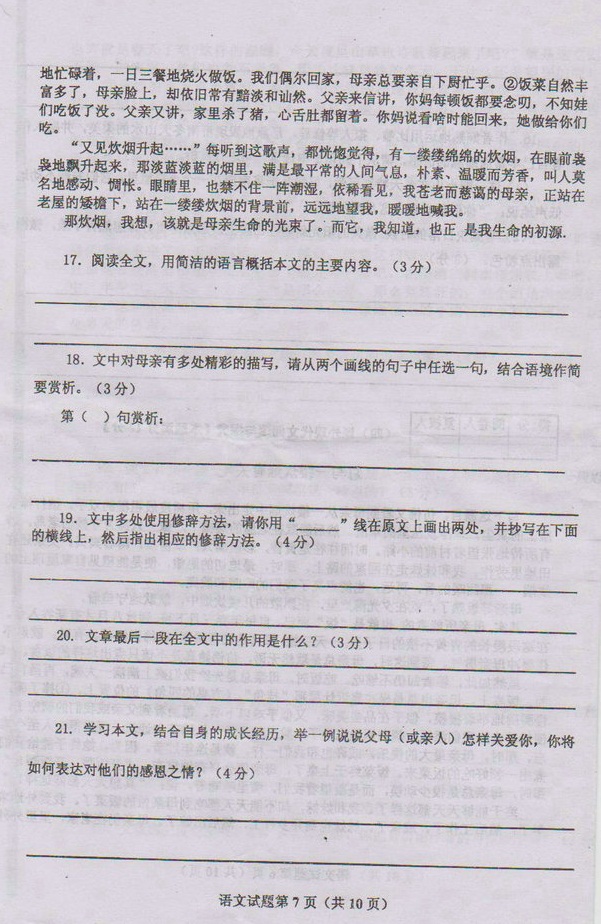 青岛59中2011-2012学年度七年级第一学期语文期中试题(7)