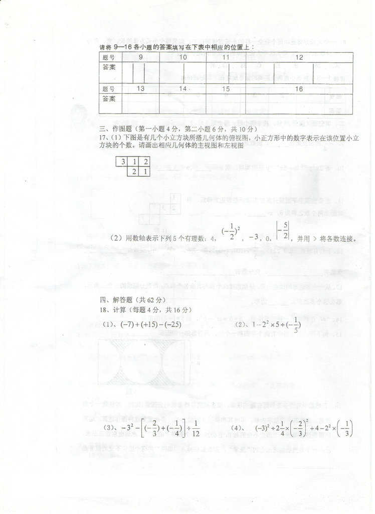 青岛59中2011-2012学年度七年级第一学期数学期中试题(3)