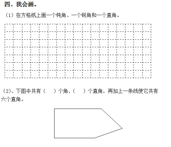 7、红领巾上共有( )个角,其中锐角有( )个,钝角有( )个。