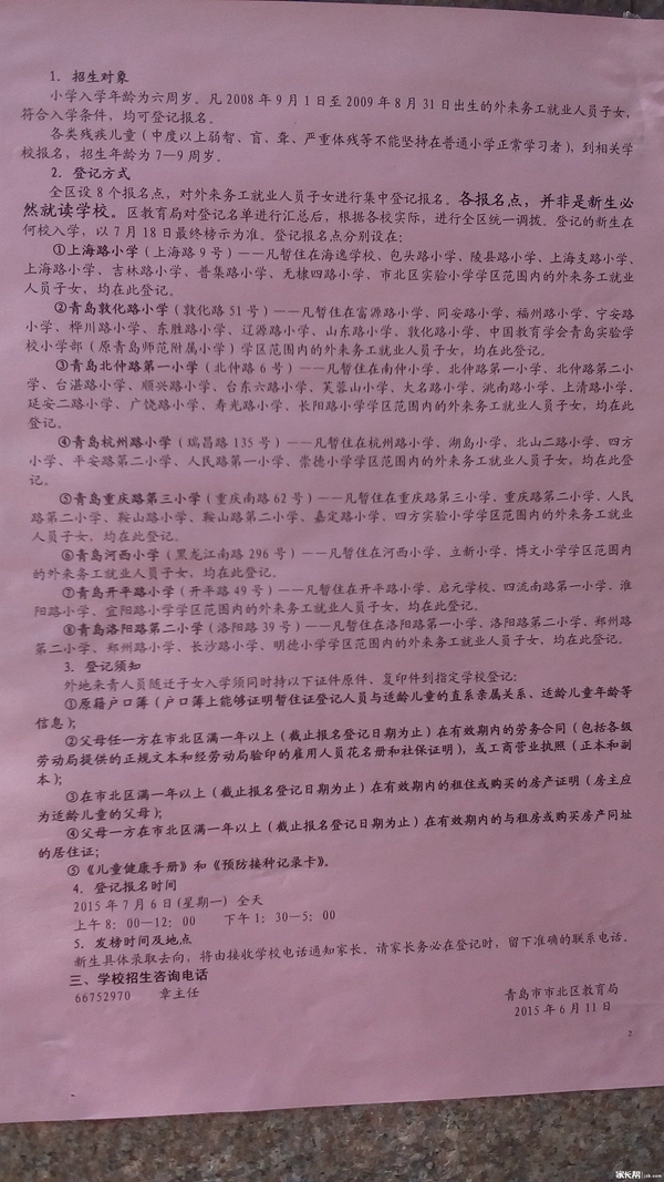 青岛宜阳路小学2015年幼升小招生简章(2)