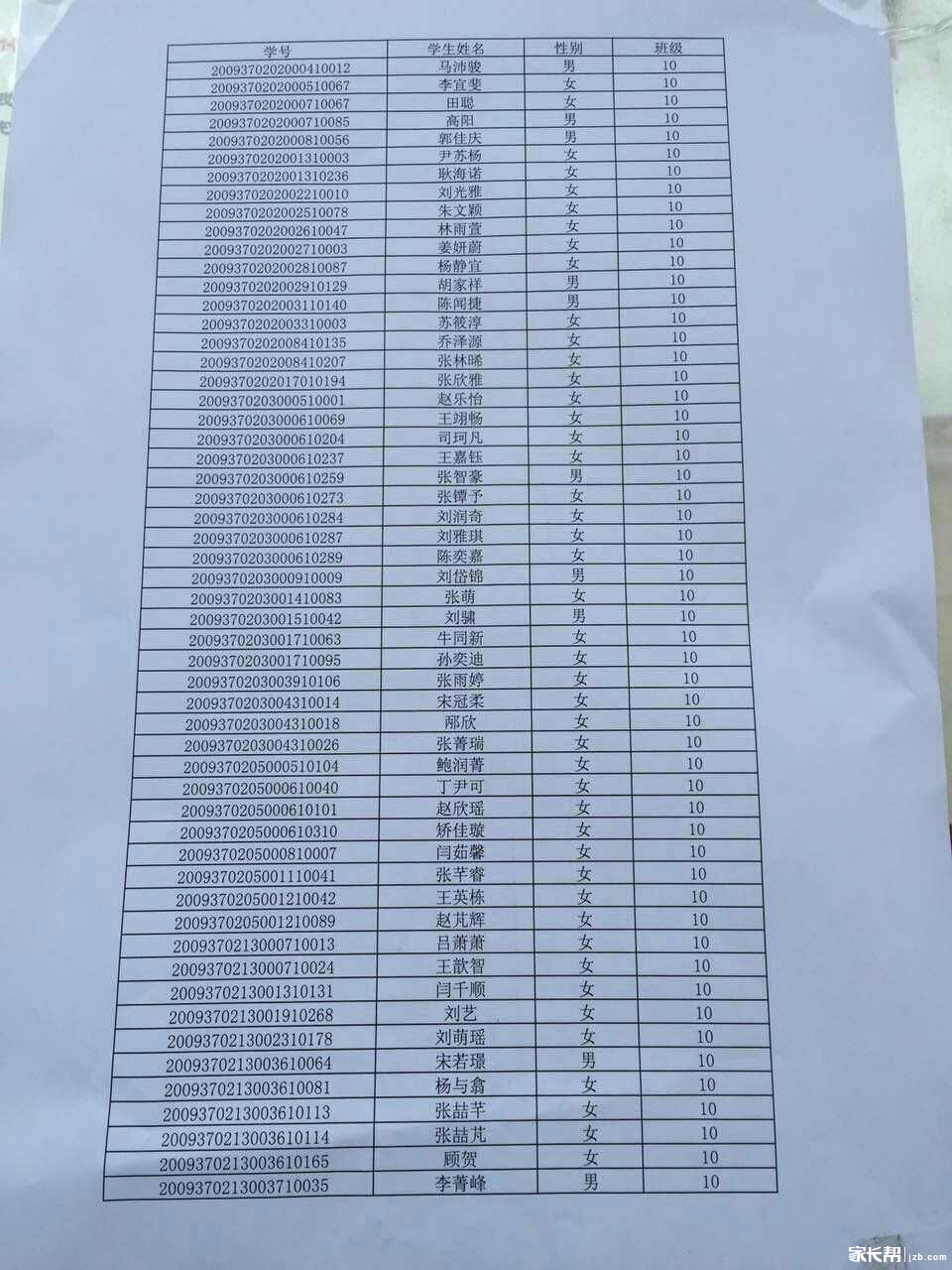 青岛39中2015小升初新生初一分班名单(10)