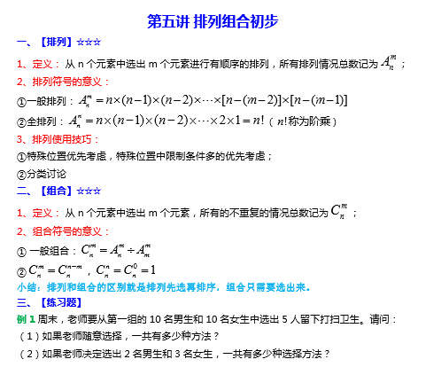 备战2016青岛小升初,五年级奥数学习至关重要。而,五年级暑假是孩子们系统的提高奥数成绩的“黄金时间”,下面从排列组合的奥数知识点讲解开始青岛五年级孩子的奥数学习之旅。【8月3日-20日每日一讲持续更新】