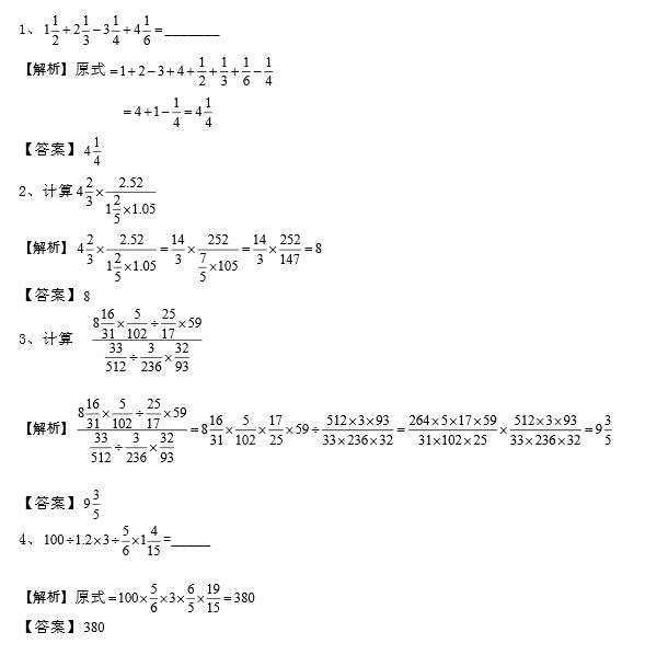 备战2016青岛小升初9月4日计算试题及答案(2)