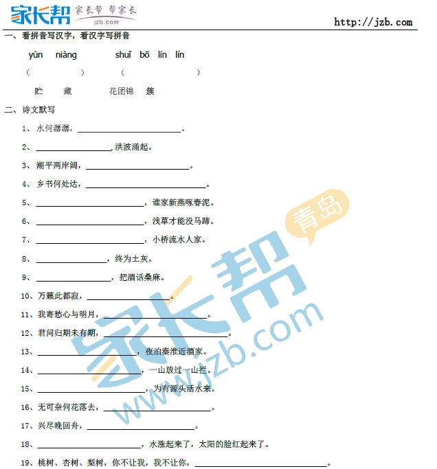 >>>点击下载完整版2015年青岛超银(广饶路)中学新初一期初考试语文试卷