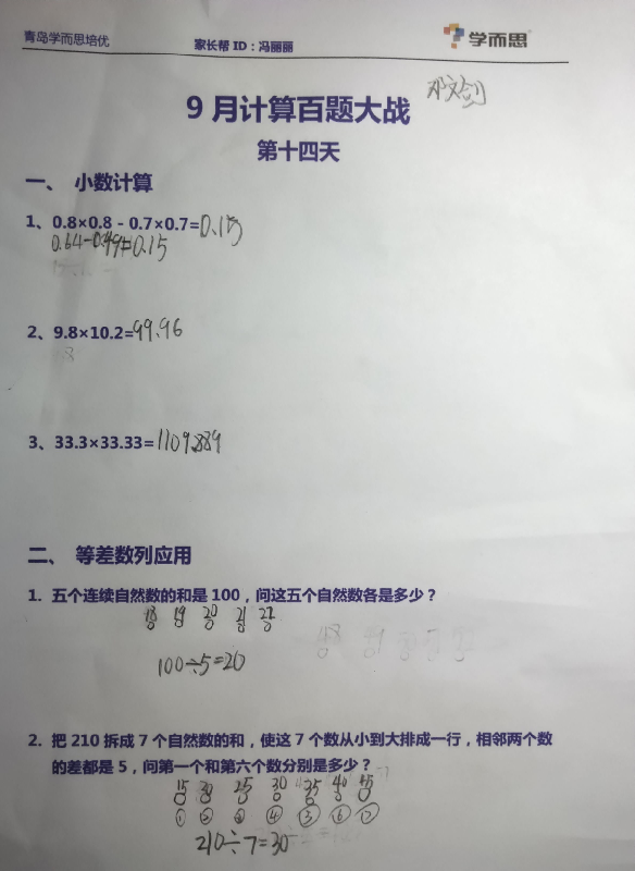 青岛四年级9月23日计算和几何试题及答案(2)