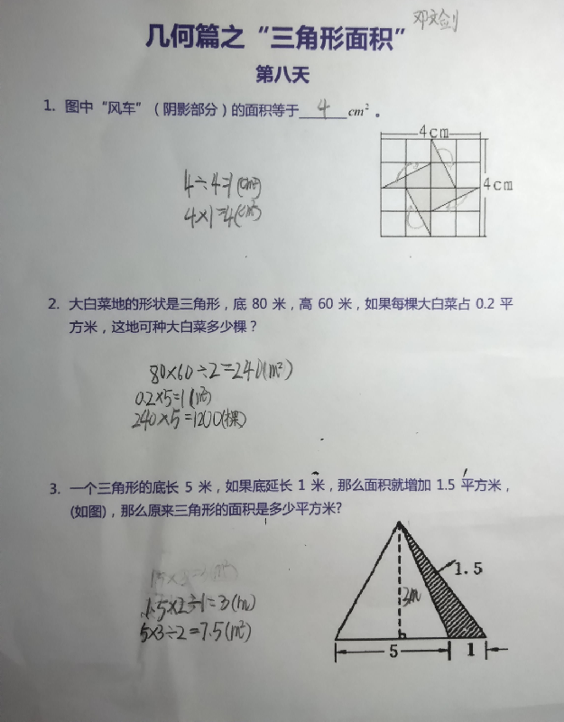 四年级9月23日计算试&几何题答案
