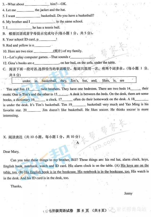 2014年青岛市北区七年级期中考试英语试题(2) 青岛奥数网 2015-11-05 15:04:50 编辑推荐: 2014年市南市北区期中考试语数外试题汇总 期中考试前,青岛的家长们千万别帮倒忙! 青岛赛区第二十一届华杯赛赛事安排 首页 上一页 下一页 尾页