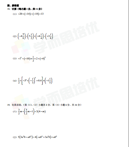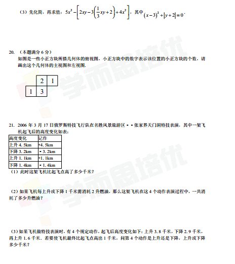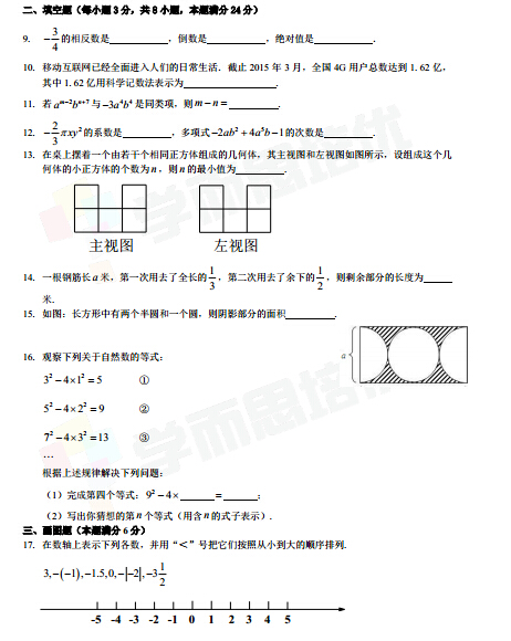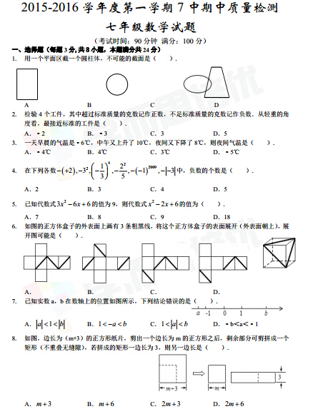 2015年下半期青岛7中七年级(初一年级)期中考试结束了,下面小编将青岛7中本次期中考试的数学试卷及答案分享如下,供2016青岛小升初择校家长参考。