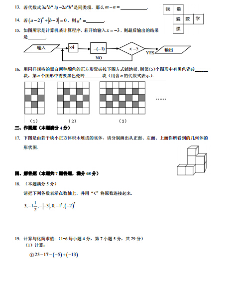 2015年下半期青岛李沧区七年级(初一年级)期中考试统考结束了,下面小编将青岛李沧区本次期中考试统考的数学试卷及答案分享如下,供2016青岛小升初择校家长参考。