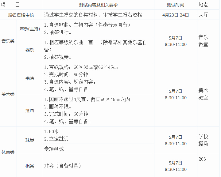 (2)其它艺术特长特别突出的学生。