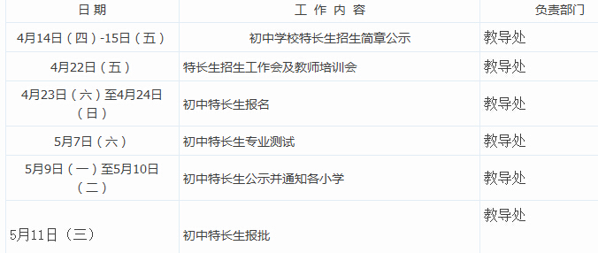 2016年青大市北附中特长生招生工作日程