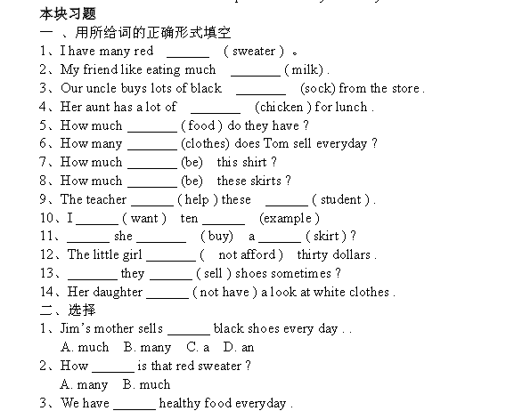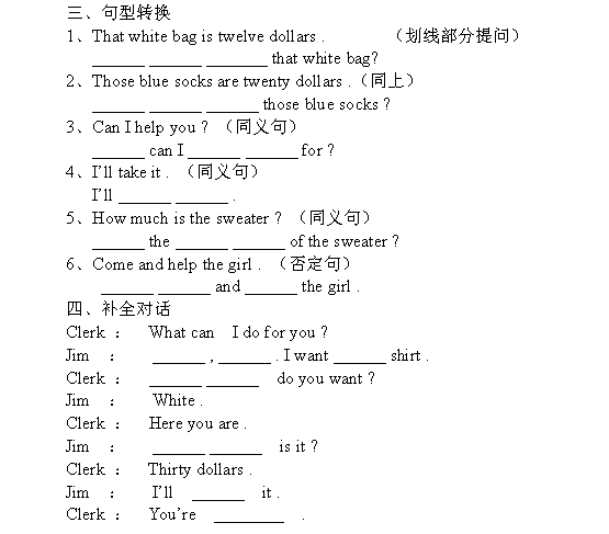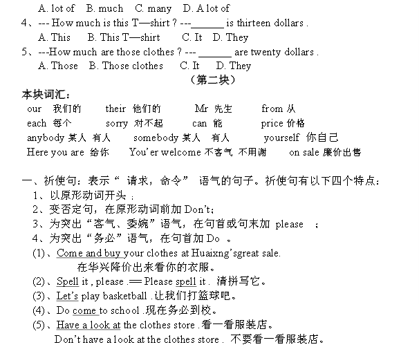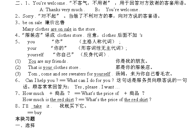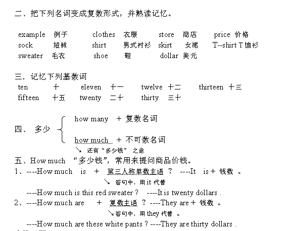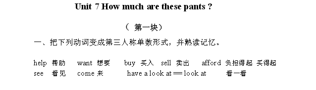 人教版七年级英语上册辅导材料:Unit7 How much these pants?