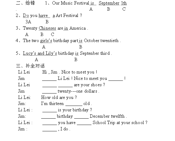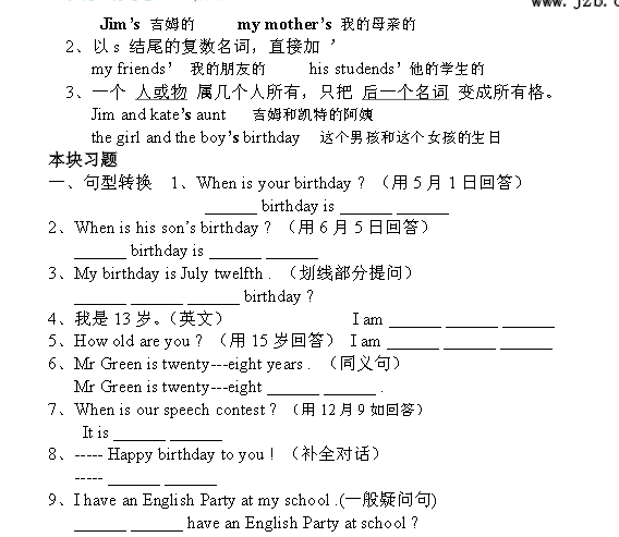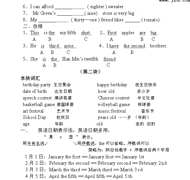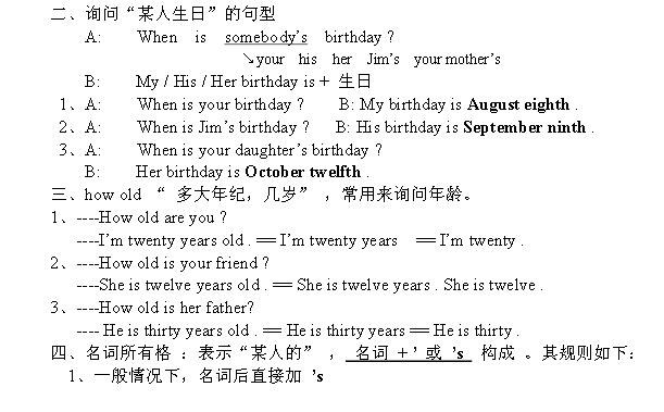 人教版七年级英语上册辅导材料:Unit8 When is your brithday?