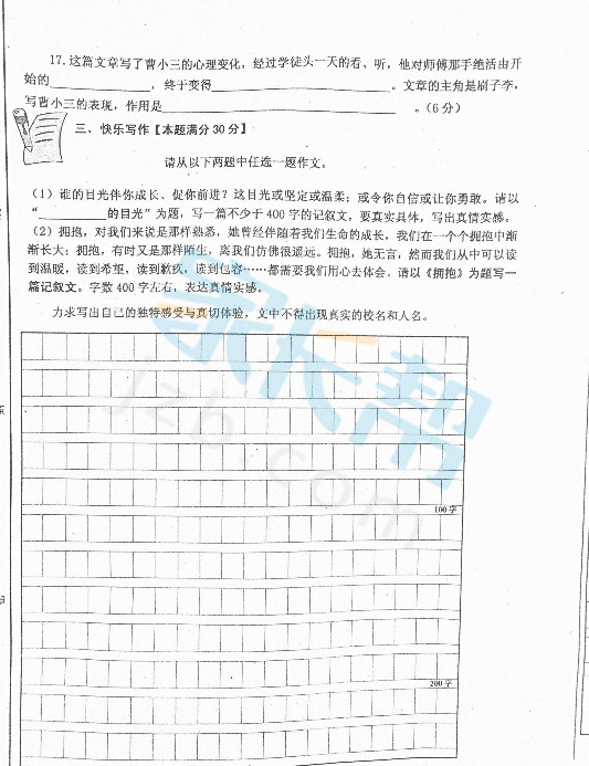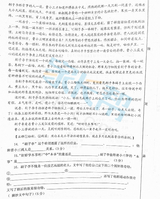 2016青岛市北区/李沧区小升初分班考试语文试卷(2)