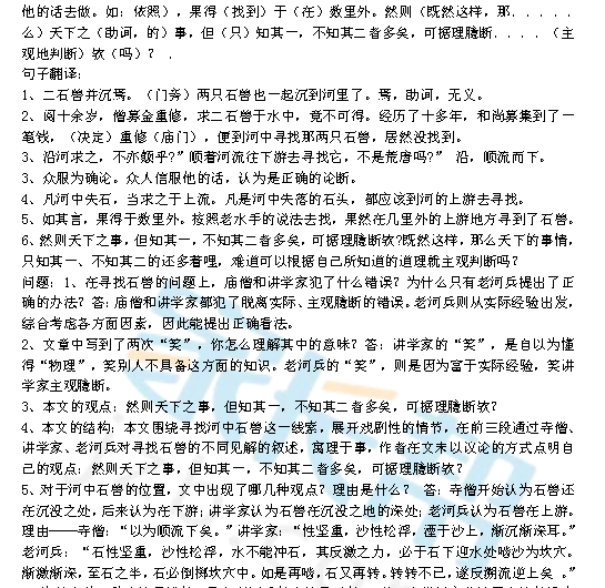 人教版七年级语文上册知识点总结:第二部分(课内文言文)