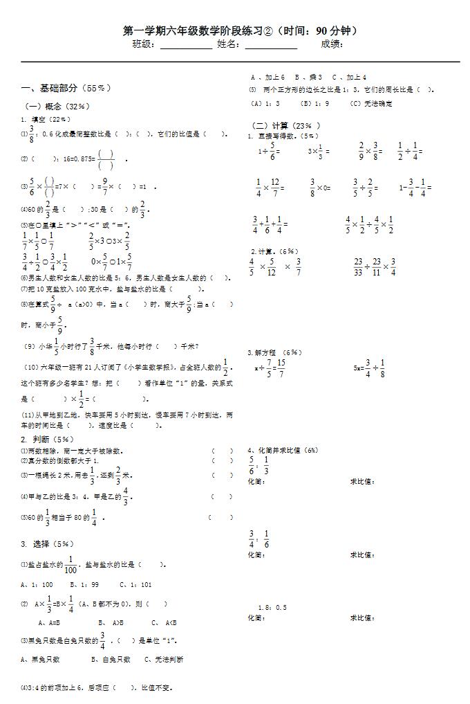 2016-2017学年青岛期中考试开始了,下面是青岛南京路小学六年级数学上册阶段练习试卷,供参考。
