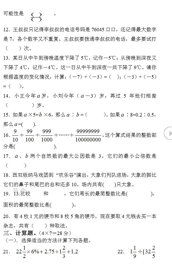 2017青岛小升初名校苏教版数学模拟试卷(3)