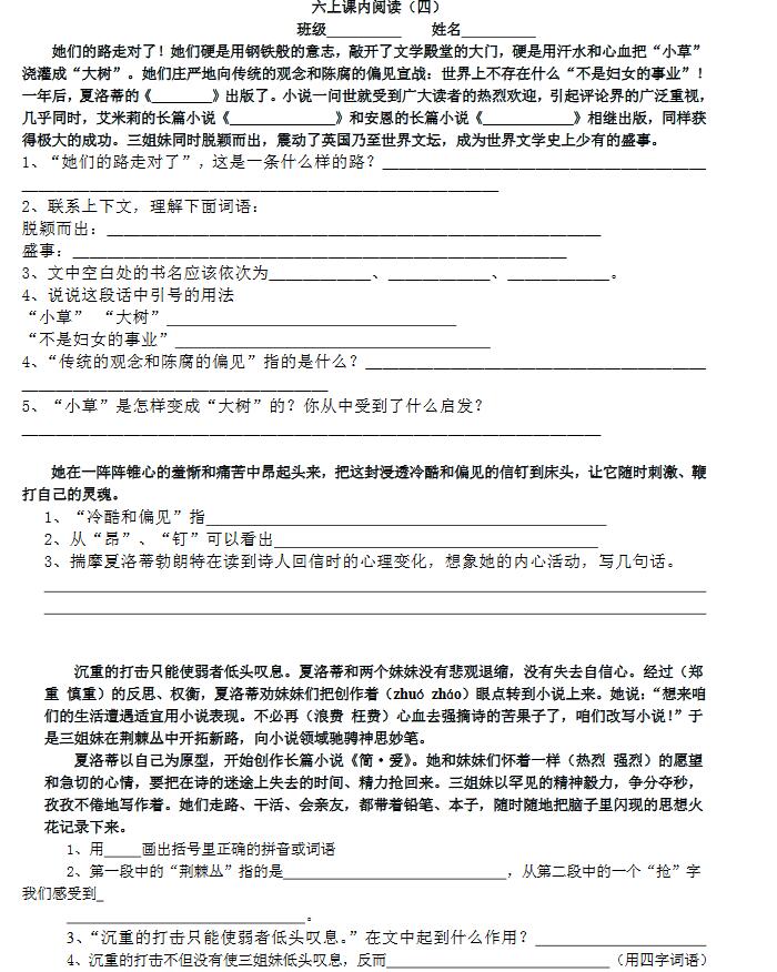 期末考试临近,下面是青岛小学六年级上册语文课内阅读训练,供2017青岛小升初六年级考生期末备考参考。