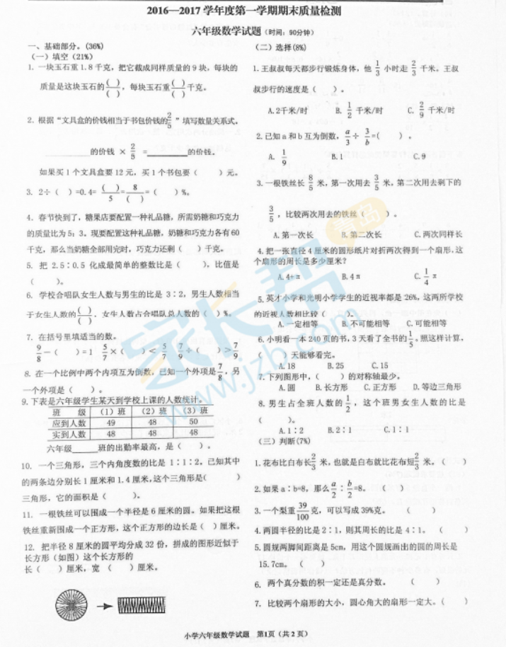 2016-2017青岛六年级第一学期期末考试数学试卷 青岛家长帮 2017-01-05 11:10:31 2017年1月5日,青岛市南、市北、李沧、崂山期末考试哦!下面给大家分享下期末考试题~ 青岛六年级第一学期期末考试数学试卷 首页 上一页 下一页 尾页