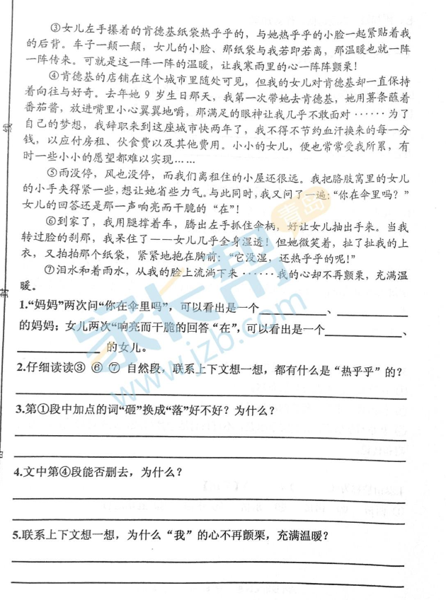 2016-2017青岛市北、崂山六年级第一学期期末考试语文试卷(5)