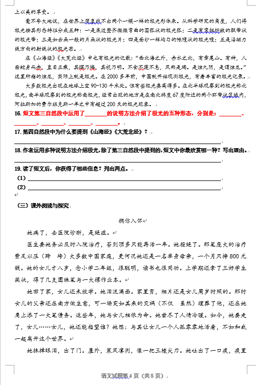 2017青岛小学六年级毕业考试语文样题(4)