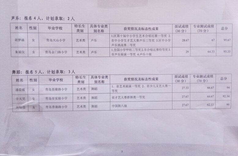 2017年青岛59中特长生拟录取学生名单公示(2)