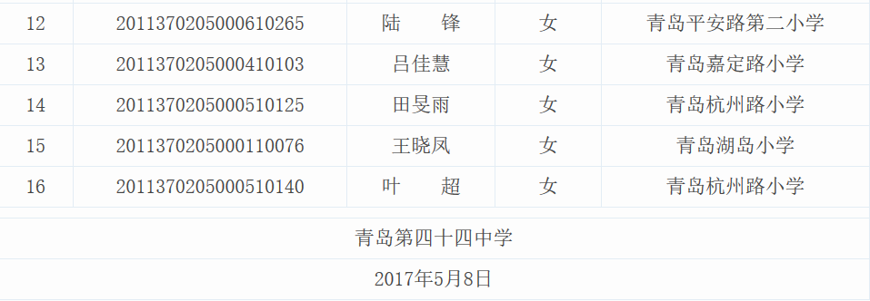 2017年青岛第四十四中特长生拟录取名单公示(2) 青岛家长帮 2017-05-08 15:34:12 编辑推荐: 2017年青岛小升初特长生招生简章汇总 青岛各校2016小升初特长生测试现场和真题汇总 首页 上一页 下一页 尾页