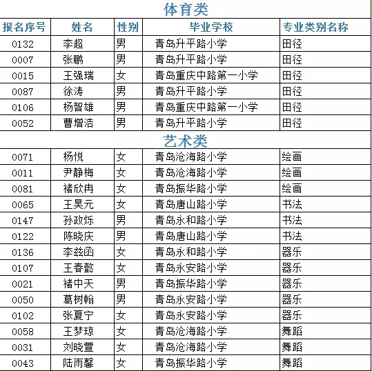 2017年青岛31中(青大附李沧分校)特长生拟录取名单