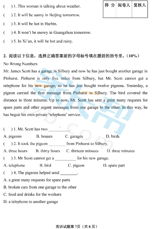 2016年青岛市南区小升初分班考试英语试题(7)