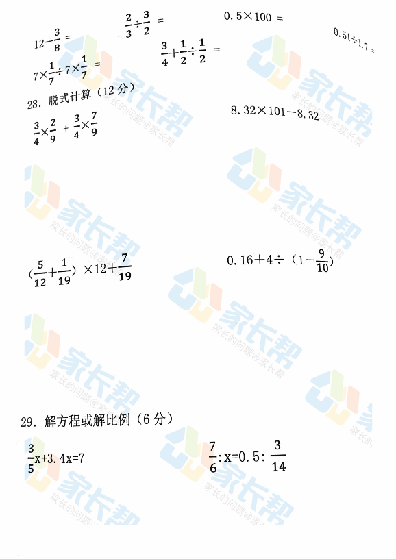 2016年青岛市南区小升初分班考试数学试题(4)