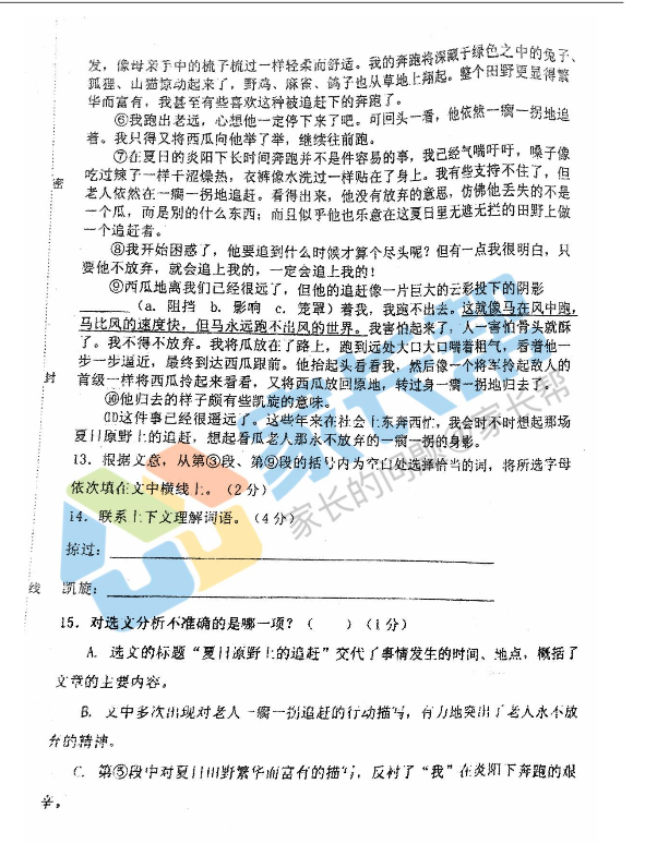 2016年青大附中小升初分班考试语文真题(5)