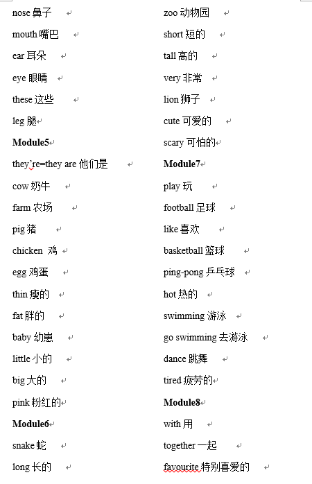 青岛外研社一年级新标准英语第2册单词表(2)