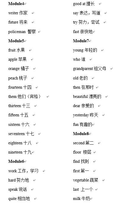 青岛外研社一年级新标准英语第6册单词表(2)