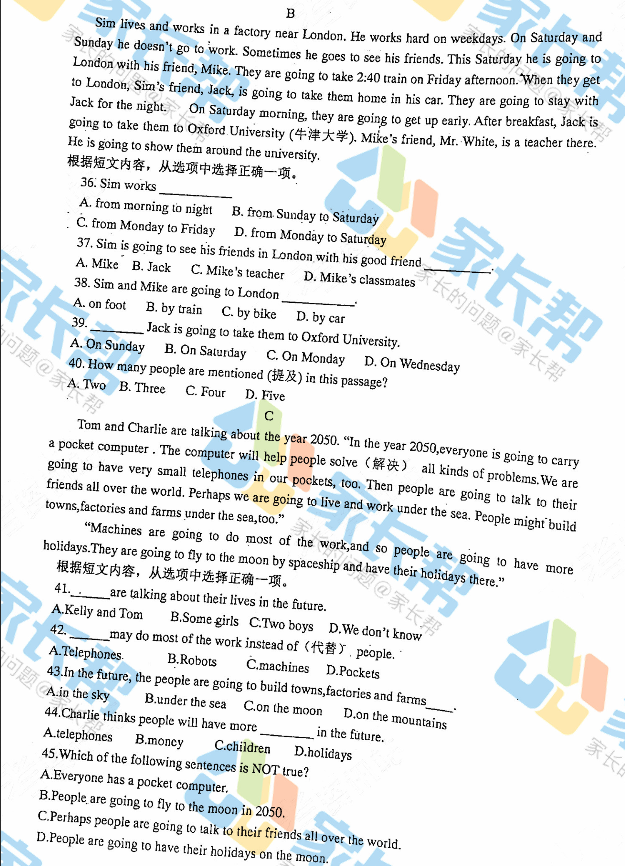 2017年青岛实验育才新初一分班考试英语试卷(3)