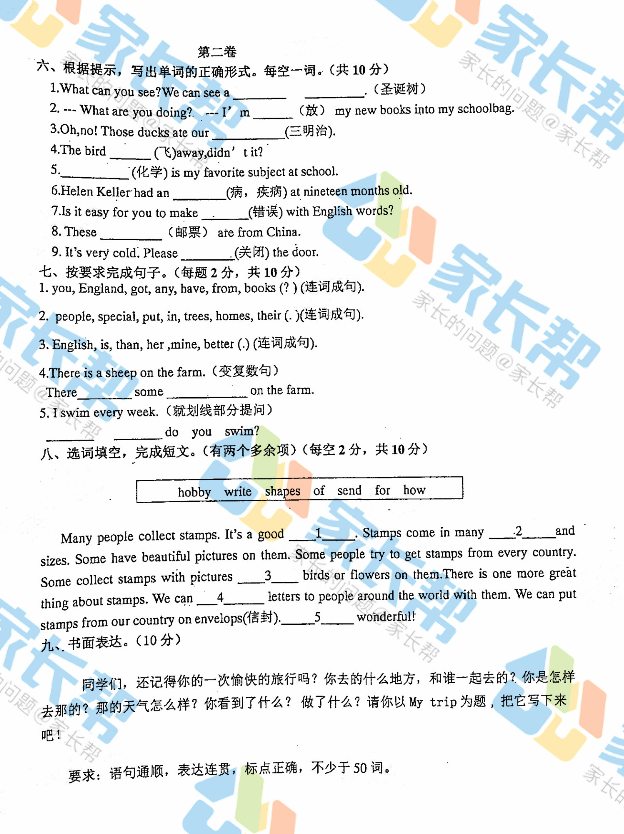 2017年青岛实验育才新初一分班考试英语试卷(4)