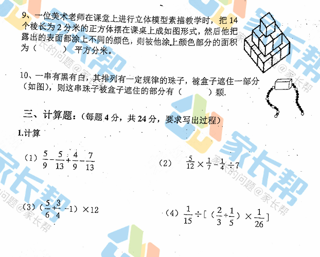 2017年青岛实验育才新初一分班考试数学试卷(3)