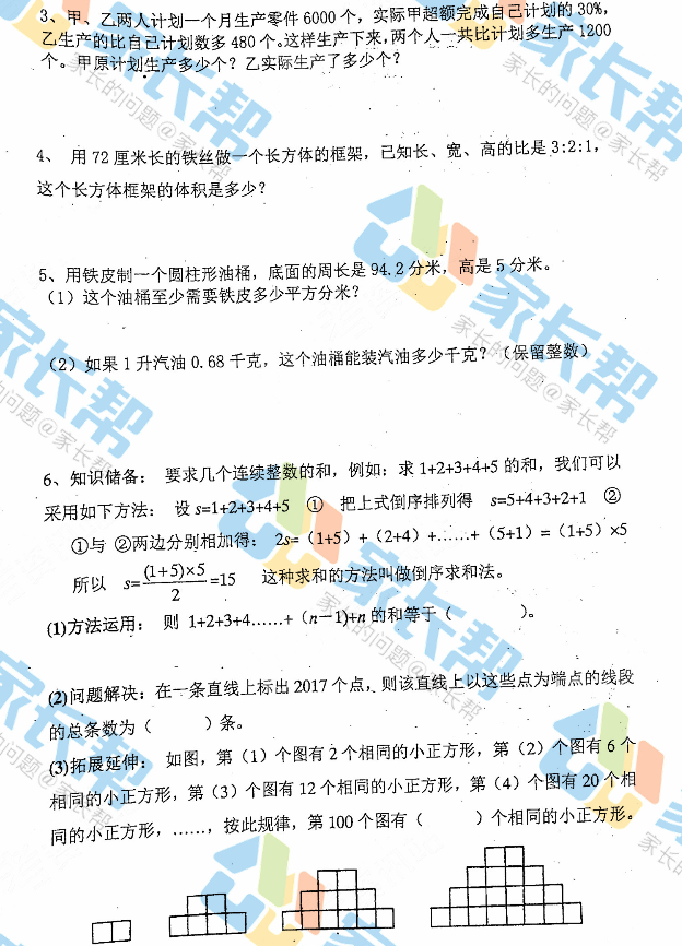 2017年青岛实验育才新初一分班考试数学试卷(4)