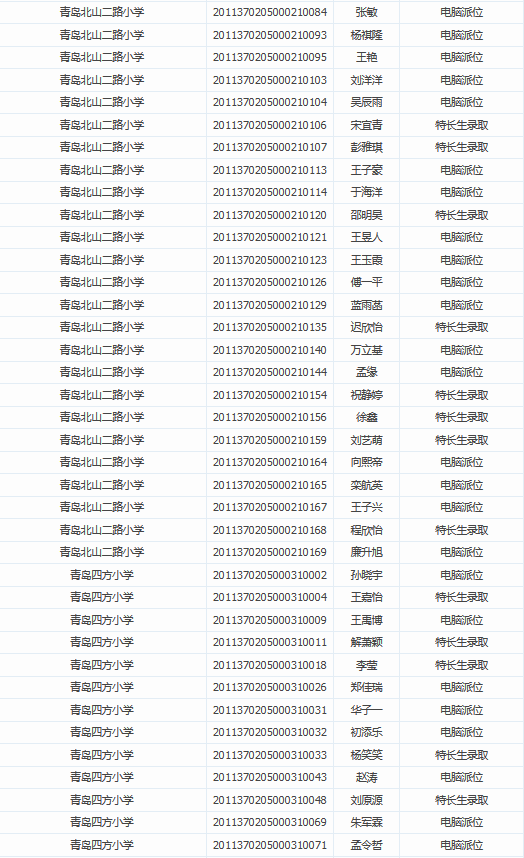 2017青岛广雅中学小升初电脑派位名单(含特长生)(3)