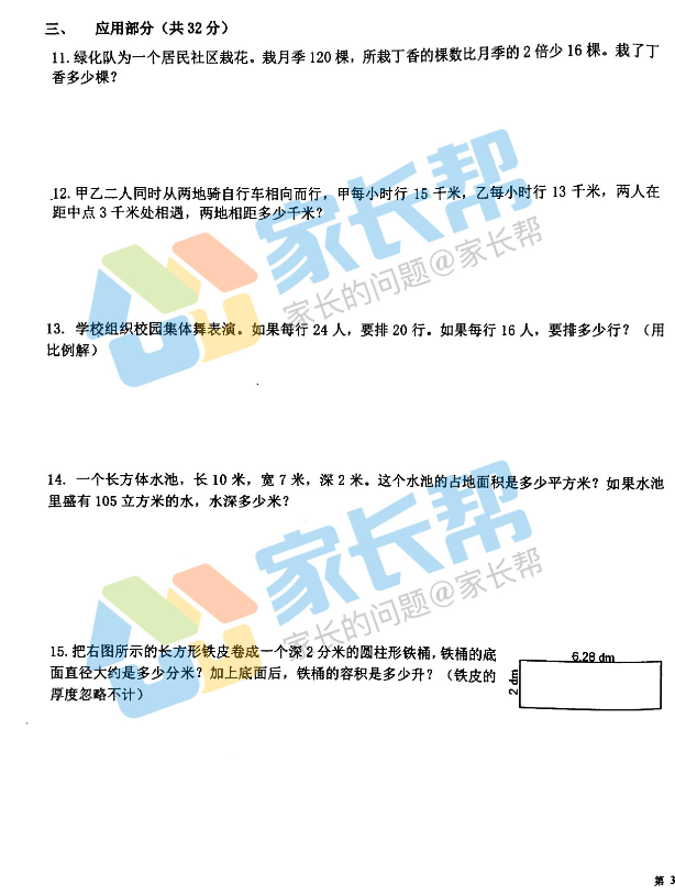 2017年青岛崂山区小学六年级毕业统考数学试卷(5)