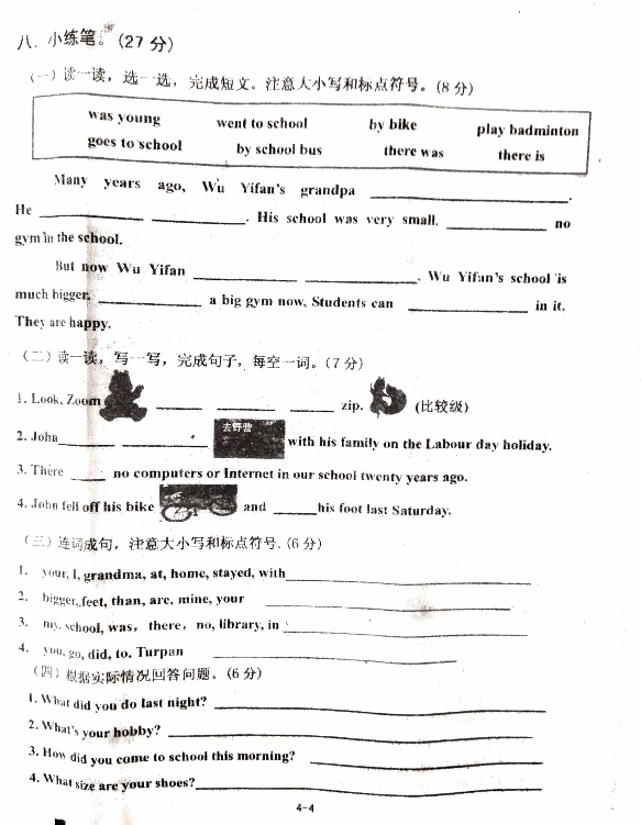 2017青岛黄岛实验初中小升初分班考试英语试题(4)