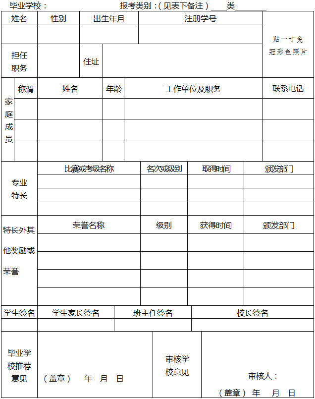 备注:报考类别请务必填写清楚类别代号和具体项目。