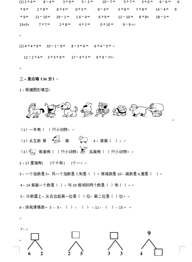 2019年青岛小学一年级数学期末模拟卷一(图片版)(2)