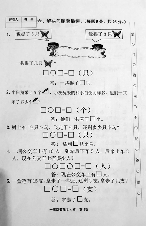 2019年青岛小学一年级数学期末模拟卷三(图片版)(4)
