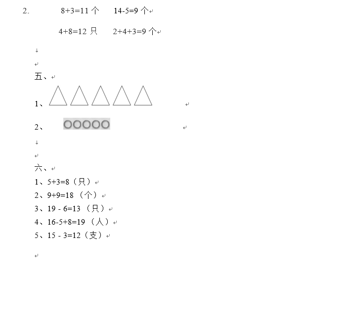 2019年青岛小学一年级数学期末模拟卷三(图片版)(7)